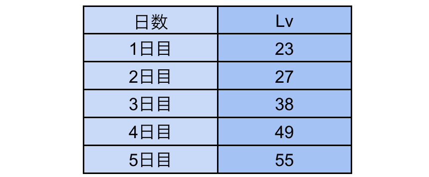 開始からの日数とLv推移を載せます。参考になれば幸いです。
